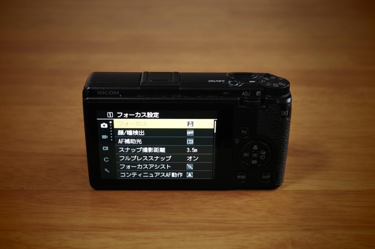 不用意に発光するのを防ぐためオフにしている。そもそも補助光が必要なほど暗いところでは、発光させたところでGRのAFには期待できない。
